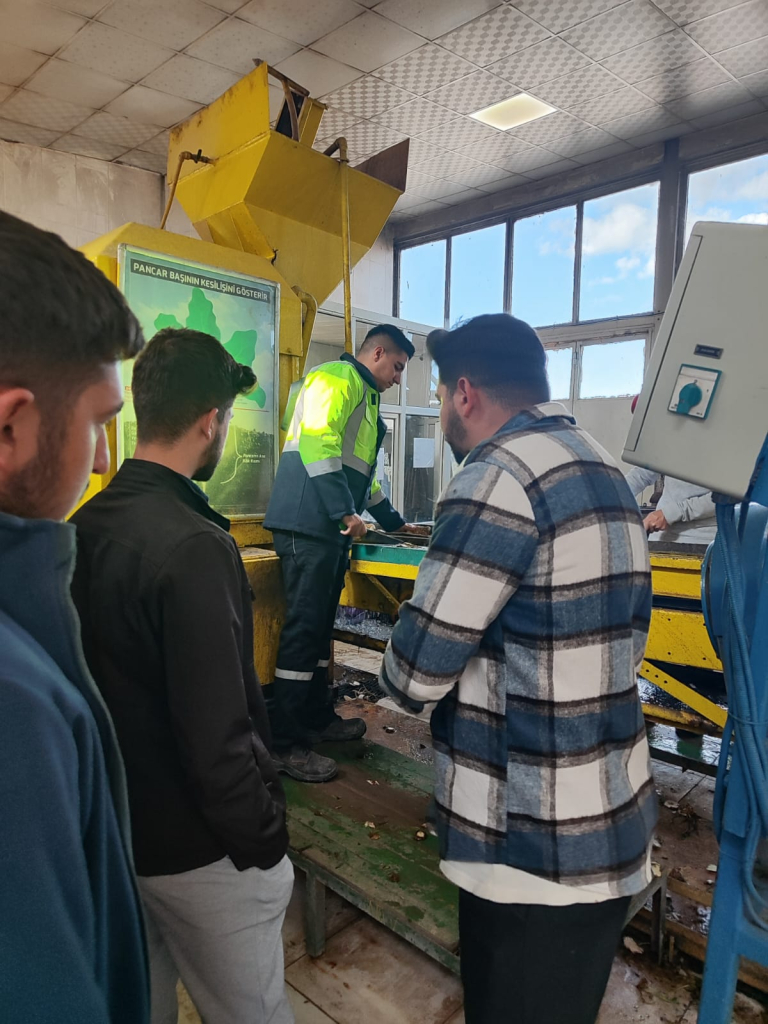 Bölümümüz öğrencileri, şeker üretim süreçlerini yerinde gözlemlemek amacıyla Malatya Türkşeker Fabrikası’na teknik gezi gerçekleştirdi. Bu gezi, öğrencilere modern şeker üretim teknikleri ve teknolojileri hakkında bilgi edinme fırsatı sundu. Gezi esnasında pancardan şeker elde etme, rafinasyon ve paketleme aşamalarının gerçekleştirildiği üretim hattı, şekerin kalite kontrol süreçlerinin incelenerek numune analizi, tat ve renk gibi kimyasal analizlerin yapıldığı laboratuvar ve fabrikanın enerji verimliliği, sürdürülebilirlik, yenilenebilir enerji kullanımı ve atık yönetimi gibi sistemler hakkında öğrencilere bilgi verildi. Teknik gezinin amacı öğrencilere teorik bilgilerini pratikte gözlemleme imkanı sunarken şeker üretiminin geçirdiği süreçleri, şeker üretimindeki yenilikler ve kalite kontrol süreçleri hakkında kapsamlı bilgi edinmelerini sağladı.